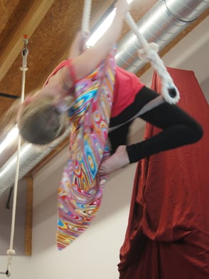 Wir entdecken gemeinsam die vielseitige Kunst der Luftakrobatik. Wir lernen verschiedene Klettertechniken, Wicklungen udn Abfaller am Vertikaltuch - am Trapez und am Luftring lernen wir elegante Luftfiguren.